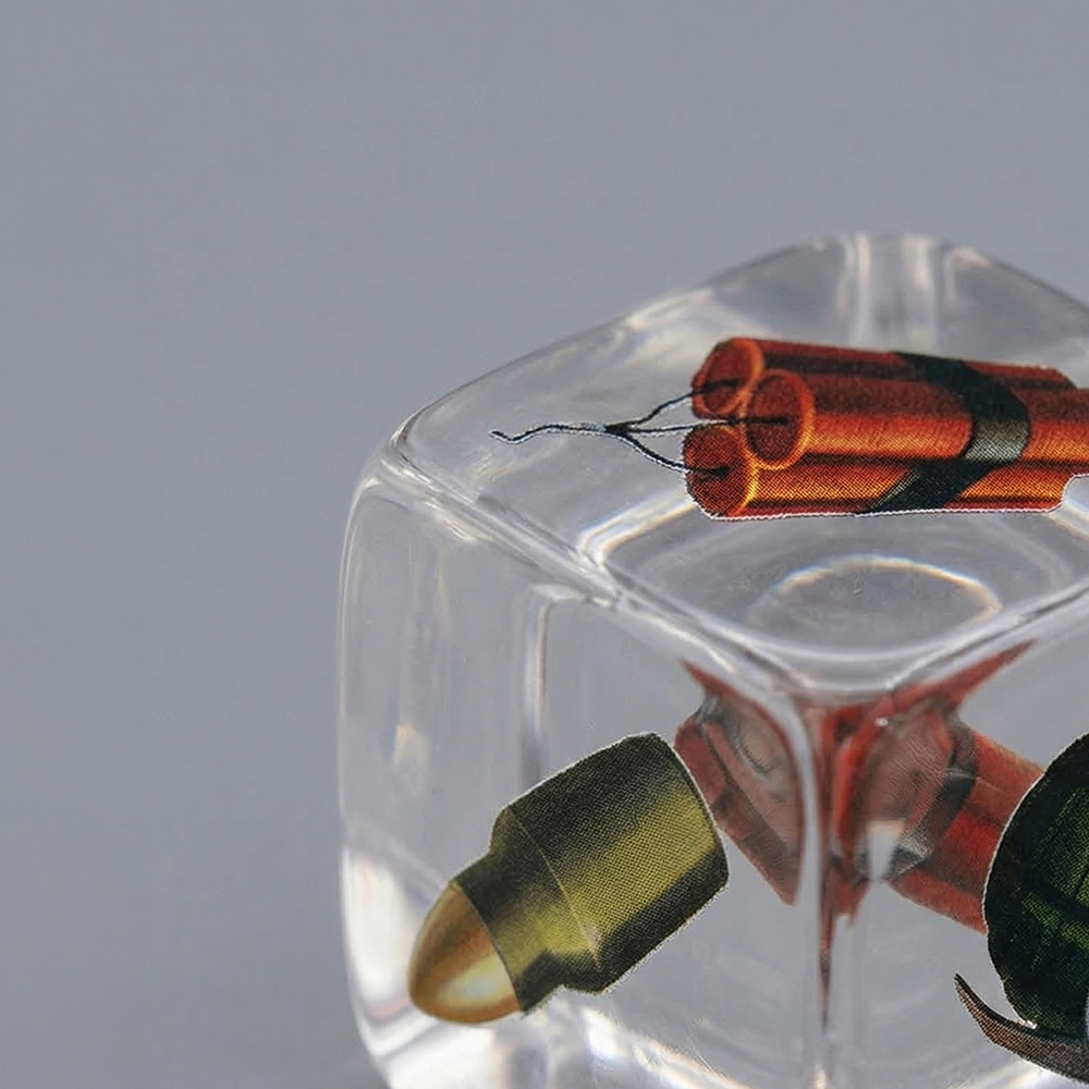 Custom printed 16mm clear plastic transparent dice with your uploaded images. Perfect for game designers and tabletop gaming enthusiasts seeking unique die for their dice game. Plastic dice may contain some small visible inner bubbles.